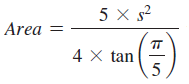 area = (5*s*s)/(4*Math.tan(Math.PI/5));