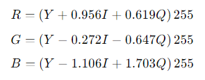 b = Math.toIntExact(Math.round((y - 1.106 * i + 1.703 * q) * 255));
